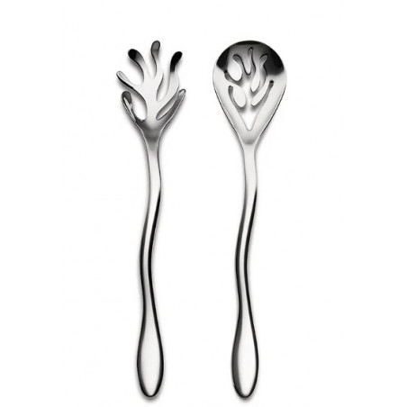 La collection Mediterraneo, dessinée par Emma Silvestris, s’enrichit de nouveaux objets imaginés pour sublimer la table avec poésie et élégance. Ces couverts à salade reprennent le motif emblématique du corail, signature de la collection. Leur manche finement travaillé adopte une ligne ondulée inspirée de la nature, renforçant le caractère organique et raffiné de l’ensemble. Réalisés en acier inoxydable, ils allient délicatesse visuelle et durabilité, pour une table romantique