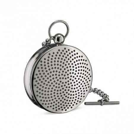 Précieuse et délicate, la boule à thé T-Timepiece de Alessi se présente comme un véritable objet-bijou. Composée d’un médaillon relié à une fine chaîne en acier, elle évoque un collier élégant ou une ancienne montre à gousset. Elle a été imaginée par le designer hollandais Titus Wybenga à l’occasion d’un workshop organisé par Alessi en 2014. Alberto Alessi, directeur de la maison, souligne la qualité artisanale remarquable de ce projet, pensé comme un objet du quotidien possédant la valeur esthétique d’un bijou. Inspirée de la montre à gousset, symbole classique du temps, T-Timepiece détourne sa fonction première : là où la montre mesure le temps, cette boule à thé invite à le suspendre, créant un moment de calme, de contemplation et de plaisir. L’idée même de pouvoir la porter comme un accessoire personnel renforce cette dimension intime. Réalisée en acier inoxydable 18/10, T-Timepiece assure une diffusion optimale des arômes. Son long cordon en acier permet de la retirer facilement d’une théière ou d’un mug. Un indispensable pour les amateurs de thé, où l’élégance rencontre la douceur d’un instant à soi