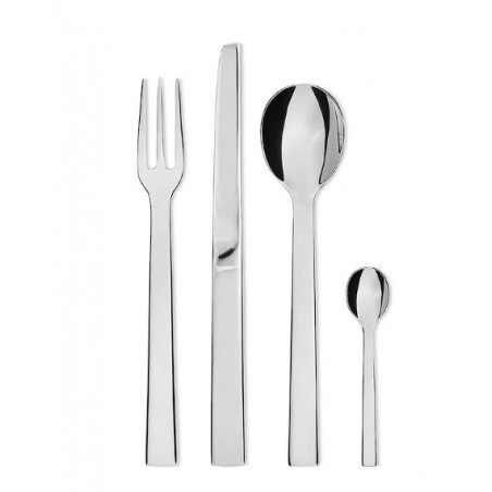 Composition : 6 cuillères de table, 6 fourchettes de table, 6 couteaux de table, 6 cuillères à café