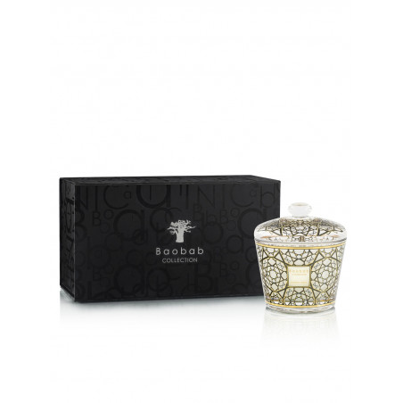 Orné d’une sérigraphie or et noire inspirée de l’univers des Mille et Une Nuits, le dôme se pose avec élégance sur le vase, sublimant la bougie qu’il protège. Son décor précieux évoque la richesse des palais orientaux et la magie des nuits étoilées.