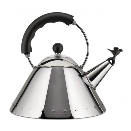 La bouilloire 9093, reconnaissable à son sifflet en forme de petit oiseau, est l’un des objets les plus emblématiques et les plus vendus de Alessi. Imaginée par Michael Graves en 1985, elle mêle avec audace références à l’art européen, influences du pop américain et clins d’œil aux cultures précolombiennes. Ce langage visuel singulier, à la fois cultivé et accessible, explique le succès immédiat et durable de cette bouilloire. Élégante mais résolument ludique, elle transforme un geste quotidien en moment de plaisir : lorsque l’eau bout, le petit oiseau siffle, déclenchant immanquablement un sourire. La production de ce modèle a débuté en 2009, confirmant son statut d’icône du design contemporain