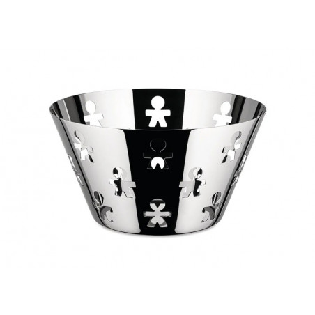 Le duo King-Kong, composé de Stefano Giovannoni et Guido Venturini, a imaginé un décor vif et ludique destiné à accompagner les objets du quotidien. Le motif de petits personnages formant une ronde joyeuse — girotondo en italien — donne son nom à une collection emblématique pour la maison et le bureau. Parmi ces créations figure le panier à fruits Girotondo, réalisé en acier inoxydable chantourné, où la fonctionnalité se mêle à une touche graphique immédiatement reconnaissable. La production de cette collection a débuté en 1993, faisant de ce motif une signature durable et pleine de charme