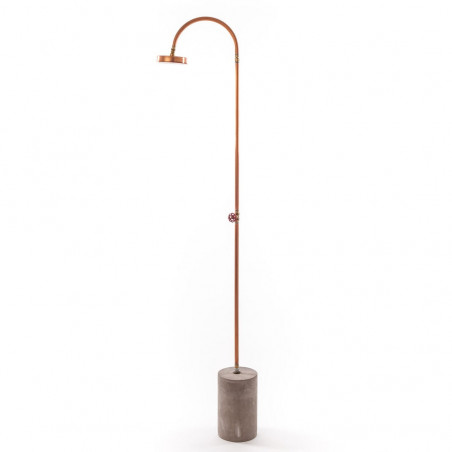 Succombez à l'irrésistible allure rétro de cette douche extérieure signée Seletti. Mariant la noblesse du cuivre à la force brute d'un socle en ciment, elle s'impose comme une pièce de design iconique au bord de votre piscine. Son large pommeau vintage et sa manette rouge d'inspiration industrielle créent un contraste visuel fascinant, idéal pour ceux qui recherchent un luxe sobre et authentique. Un véritable hommage à la robinetterie ancienne, conçu pour sublimer la nature environnante.