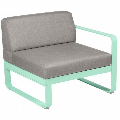 La gamme Bellevie, tout en rondeur, signée du studio de design Pagnon et Pelhaître, c’est la douceur de vivre au jardin. Il est en effet tellement aisé d’assembler ses différents modules pour optimiser l’espace et former LE coin lounge dont vous rêviez. Expérimentez une multitude de configurations : le champ des possibles est illimité ! Tenez, imaginez le module droit 1 place, associé à un module central, une tablette de jonction et un module gauche 1 place. A vous de laisser libre cours à votre créativité : variez les plaisirs et les compositions ! En angle ? En U ? Ou encore, accolez-le à un pouf, pour former une méridienne stylée... Pour assembler vos modules, rien de plus simple : de petites réglettes vous permettent de les fixer les uns aux autres, et des vis pour accrocher la tablette. Quant à leurs coussins, ils sont d’un confort absolu, grâce à leur mousse polyuréthane haute résilience. Et, recouverts de housses toutes douces en tissu Sunbrella® que vous pouvez laver en machine, ils traversent les ans sans prendre une ride. Enfin, leur piètement et structure en aluminium sont d’une légèreté qui les rend ultra faciles à manier. La conception aluminium des modules, alliée à leur peinture poudre polyester anti UV leur permettent d’affronter les intempéries et de résister aux conditions extrêmes, même en bord de mer. Goûtez à la Bellevie... Offrez-vous le plaisir de jouer avec les éléments de cette gamme si adaptée à nos modes de vie. Et, pour la structure aluminium, choisissez parmi une très large palette de tons. Dernière question à trancher : de quelle couleur seront vos coussins ?