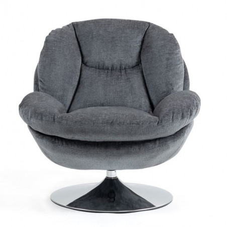 Apportez une touche de modernité à votre salon avec ce fauteuil aux lignes généreuses et au coloris gris foncé intemporel. Son système pivotant intégré vous offre une liberté de mouvement totale, idéale pour passer d'une conversation à votre moment de lecture. Reposant sur un pied rond en métal chromé, il combine une silhouette contemporaine à un confort d'assise certifié Oeko-Tex, garantissant un intérieur sain et élégant.