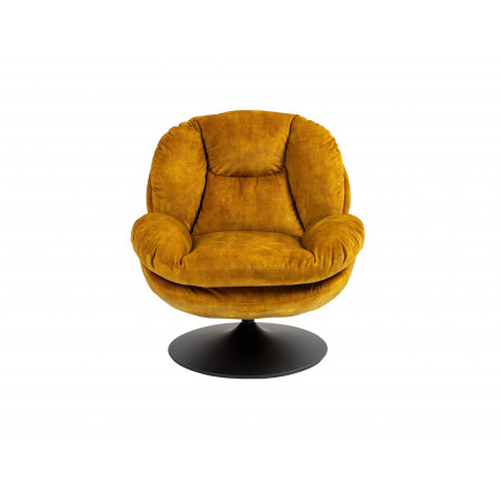 Illuminez votre intérieur avec ce fauteuil au coloris ocre vibrant, conçu pour allier confort et esthétique. Son revêtement en velours 100 % polyester offre un toucher soyeux et une allure sophistiquée, tandis que son piétement rond en métal noir apporte une note industrielle moderne. Grâce à son système pivotant, il s'adapte à tous vos besoins, que ce soit pour une conversation animée ou un moment de lecture paisible.