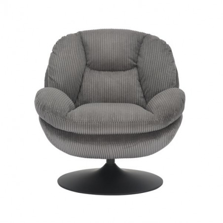 Succombez au charme irrésistible du velours côtelé avec ce fauteuil gris clair, véritable invitation à la détente. Sa texture reliefée, très en vogue, apporte un cachet immédiat et une sensation de confort absolu à votre salon. Monté sur un piétement rond en métal noir mat, son système pivotant intégré vous permet de suivre le rythme de votre intérieur avec fluidité et élégance.