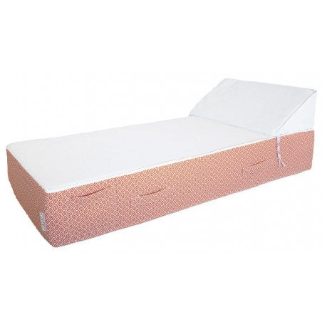Couleur du tissu : Blanc nid d'abeille avec motifs géométriques orange