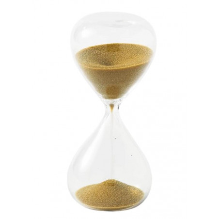 Ce beau sablier en verre aux lignes épurées vous offrira un effet visuel relaxant. Laissez le temps s’écouler avec style ! Le sable coloré met 30 min à s’écouler d’une ampoule à l’autre. Superbe objet déco.